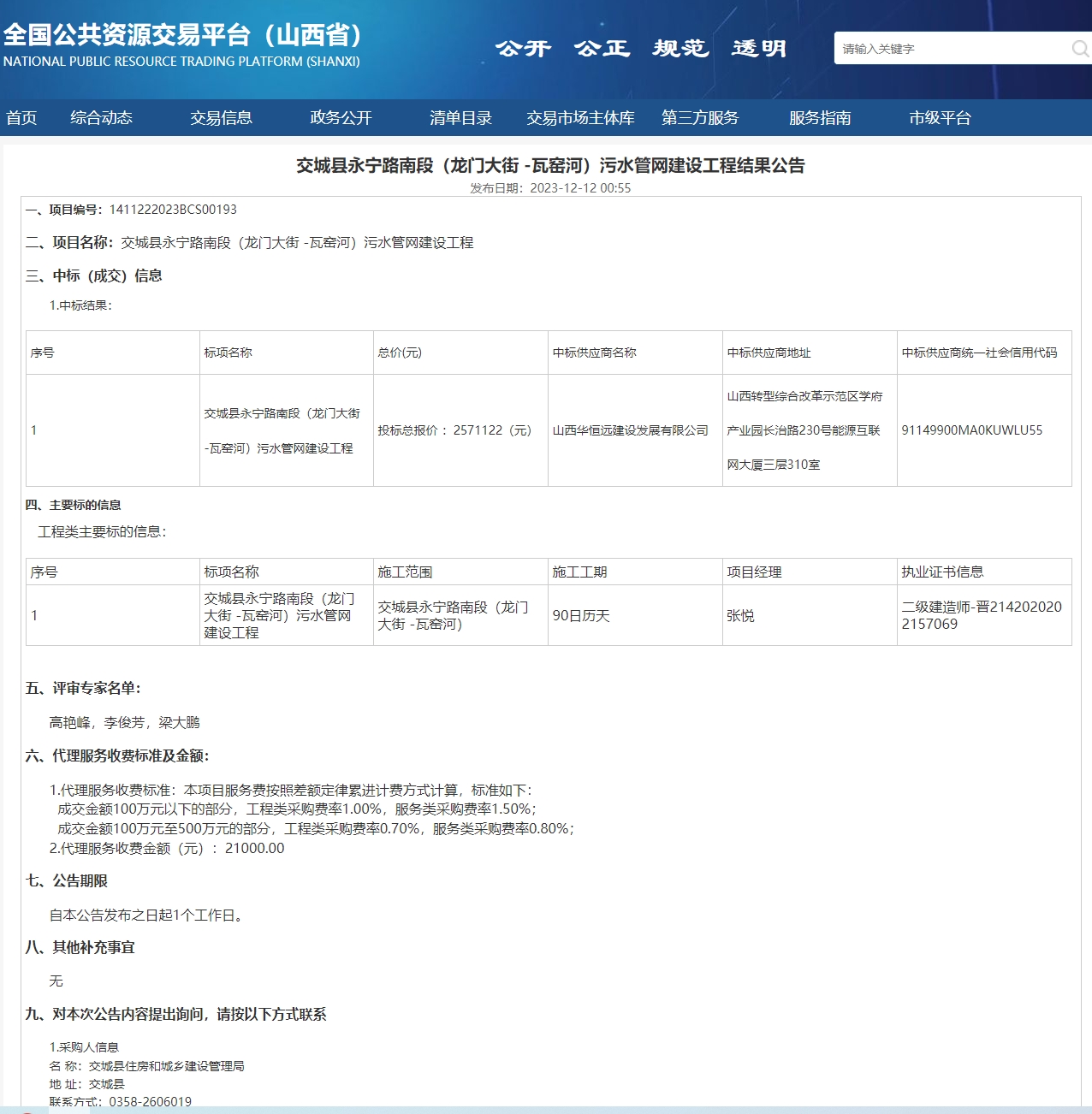 交城縣永寧路南段(龍門大街 -瓦窯河)污水管網(wǎng)建設(shè)工程