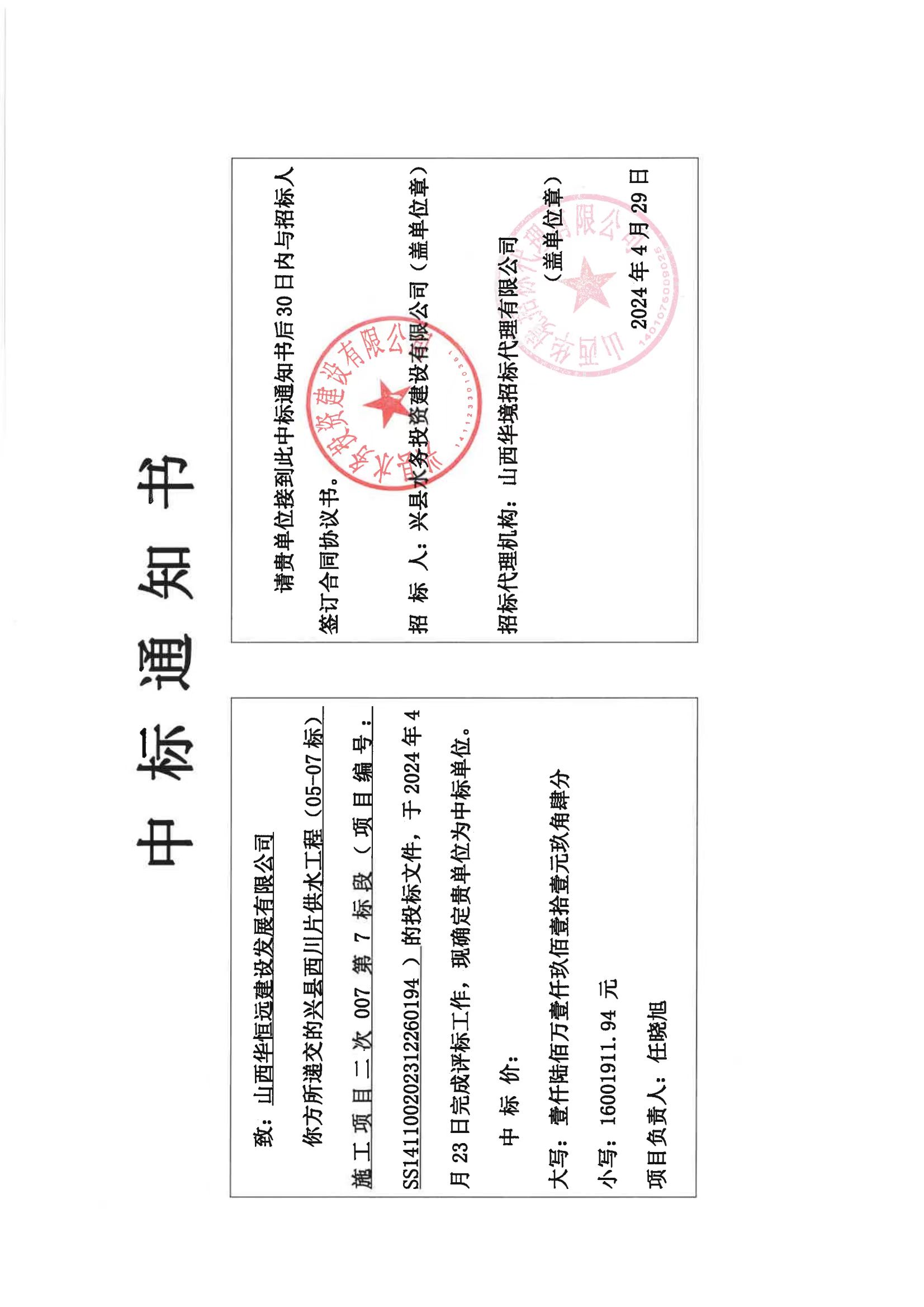 2024年興縣西川片供水工程(05-07 標(biāo))施工項目二次007第7標(biāo)段