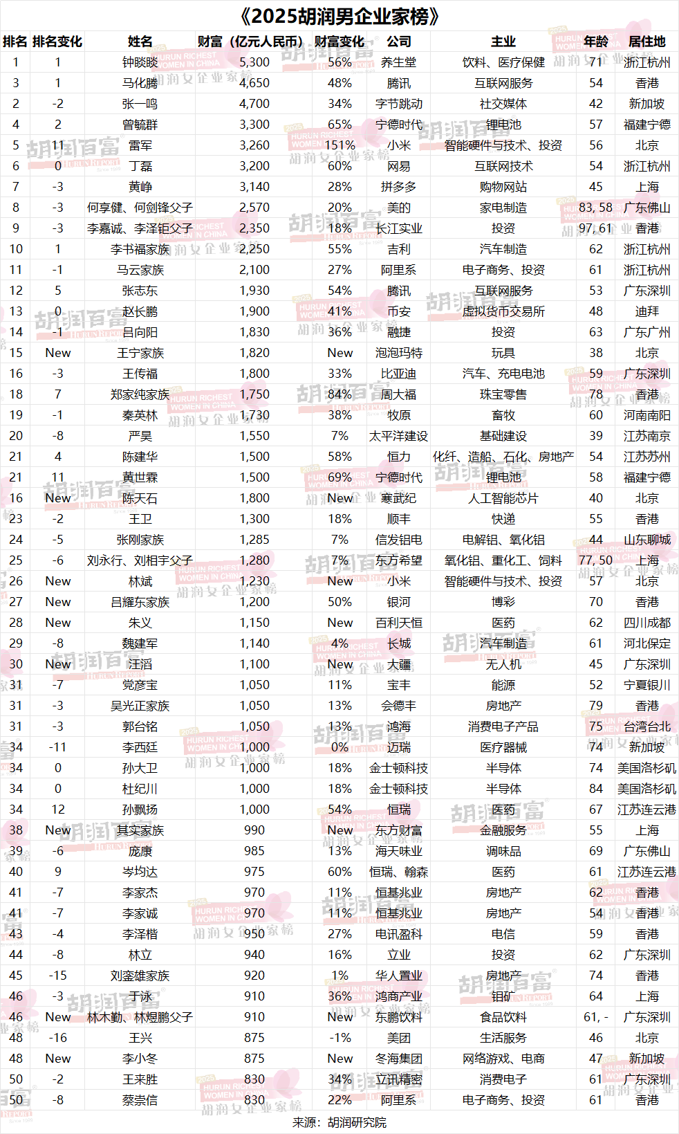更多內(nèi)容請?jiān)L問:胡潤百富 - 資訊 - 2025胡潤全球富豪榜 (hurun.net)