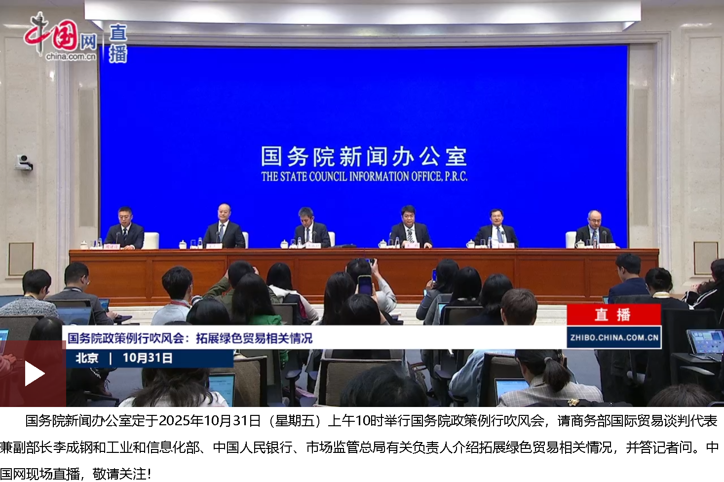 謝謝主持人。各位媒體界的朋友,大家上午好!很高興和工信部、中國人民銀行、市場監(jiān)管總局的同事一起參加今天的新聞吹風會,非常感謝大家對綠色貿(mào)易工作的關(guān)心和支持。