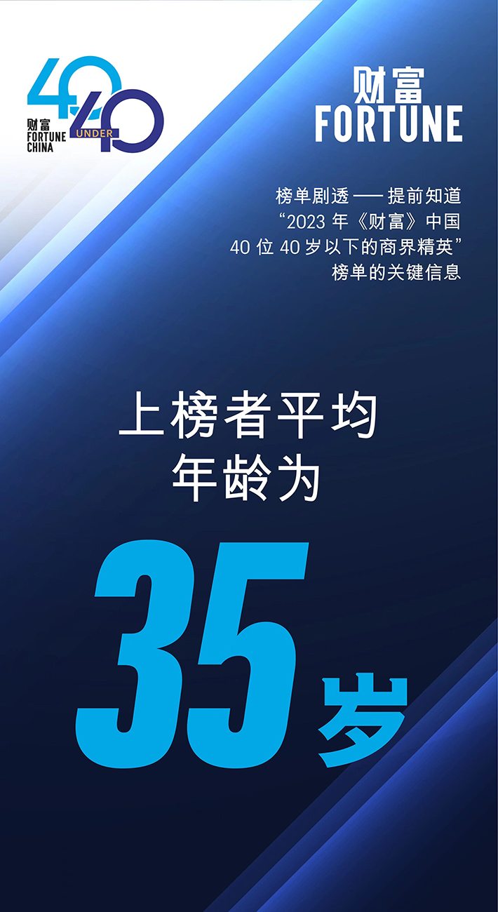 2023年《財富》中國40位40歲以下的商界精英榜單將于明日發(fā)布