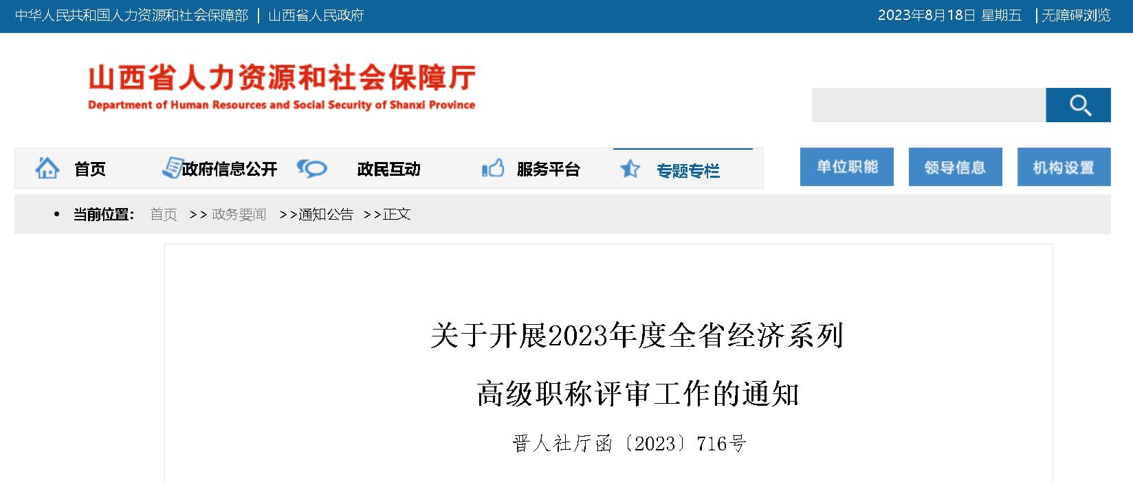 根據(jù)人力資源和社會(huì)保障部《關(guān)于深化經(jīng)濟(jì)專業(yè)人員職稱制度改革的指導(dǎo)意見(jiàn)》(人社部發(fā)〔2019〕53號(hào))改革精神,按照省人力資源和社會(huì)保障廳《關(guān)于印發(fā)<職稱評(píng)審管理實(shí)施細(xì)則>的通知》(晉人社廳發(fā)〔2021〕28號(hào))和《關(guān)于做好2023年度全省職稱評(píng)審工作的通知》(晉人社廳函〔2023〕567號(hào))要求,現(xiàn)就開(kāi)展2023年度全省經(jīng)濟(jì)系列高級(jí)職稱評(píng)審工作有關(guān)事項(xiàng)通知如下。