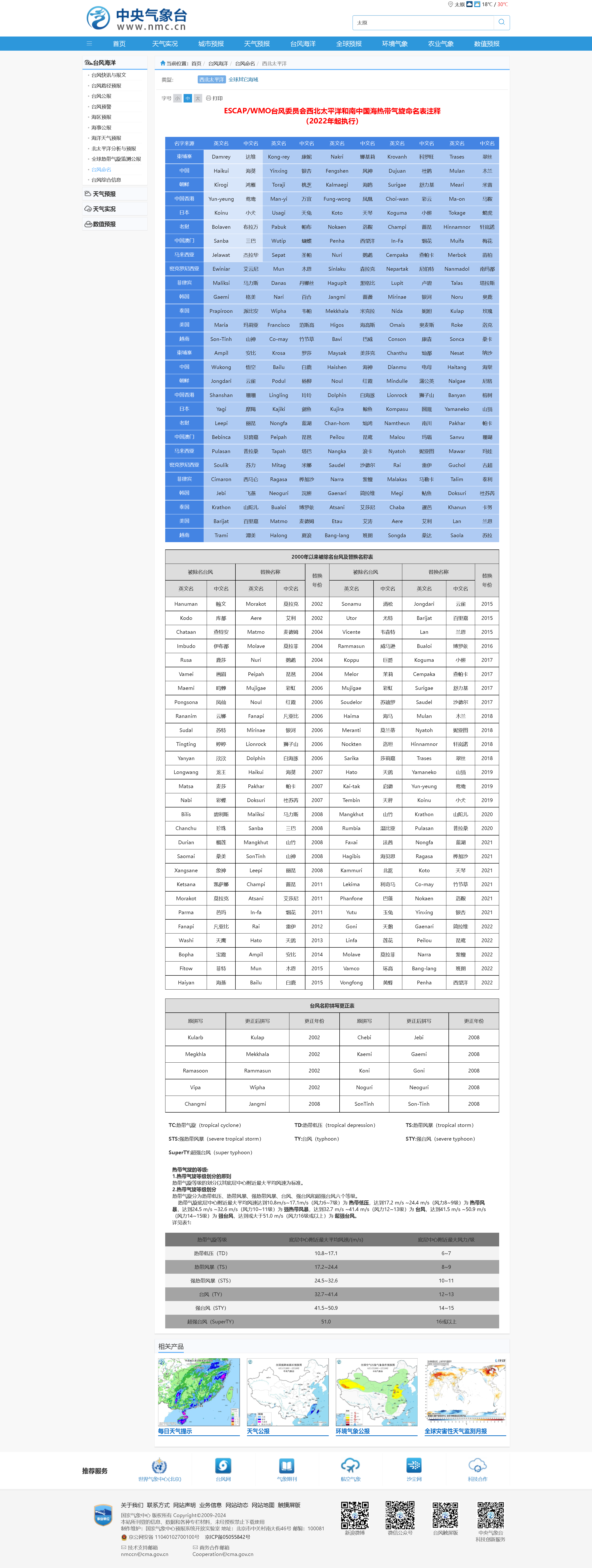 2024年臺(tái)風(fēng)命名表