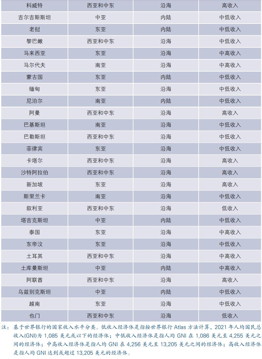 注: 基于世界銀行的國家收入水平分類。低收入經濟體是指按世界銀行 Atlas 方法計算,2021 年人均國民總收入(GNI)為 1,085 美元或以下的經濟體;中低收入經濟體是指人均 GNI 在 1,086 美元至 4,255 美元之間的經濟體;中高收入經濟體是指人均 GNI 在 4,256 美元至 13,205 美元之間的經濟體;高收入經濟體是指人均 GNI 達到或超過 13,205 美元的經濟體。