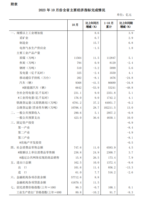 1-10月份,全省上下堅(jiān)持以習(xí)近平新時(shí)代中國(guó)特色社會(huì)主義思想為指導(dǎo),全面貫徹落實(shí)省委、省政府各項(xiàng)決策部署,扎實(shí)推動(dòng)高質(zhì)量發(fā)展,宏觀政策持續(xù)發(fā)力顯效,主要指標(biāo)穩(wěn)定增長(zhǎng),工業(yè)生產(chǎn)平穩(wěn)運(yùn)行,消費(fèi)市場(chǎng)穩(wěn)步復(fù)蘇,就業(yè)物價(jià)總體穩(wěn)定,經(jīng)濟(jì)運(yùn)行持續(xù)回升向好。
