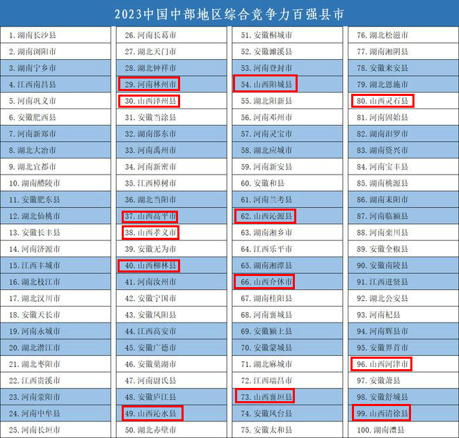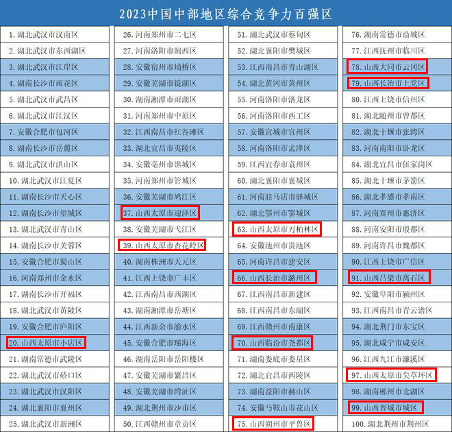 近日,競爭力智庫等機構(gòu)在北京發(fā)布《中國縣域發(fā)展監(jiān)測報告2023》,揭曉“2023中國綜合競爭力百強縣市”等名單,太原市清徐縣入圍“2023中國中部地區(qū)綜合競爭力百強縣市”,太原市小店區(qū)、迎澤區(qū)、杏花嶺區(qū)、萬柏林區(qū)、尖草坪區(qū)入圍“2023中國中部地區(qū)綜合競爭力百強區(qū)”。