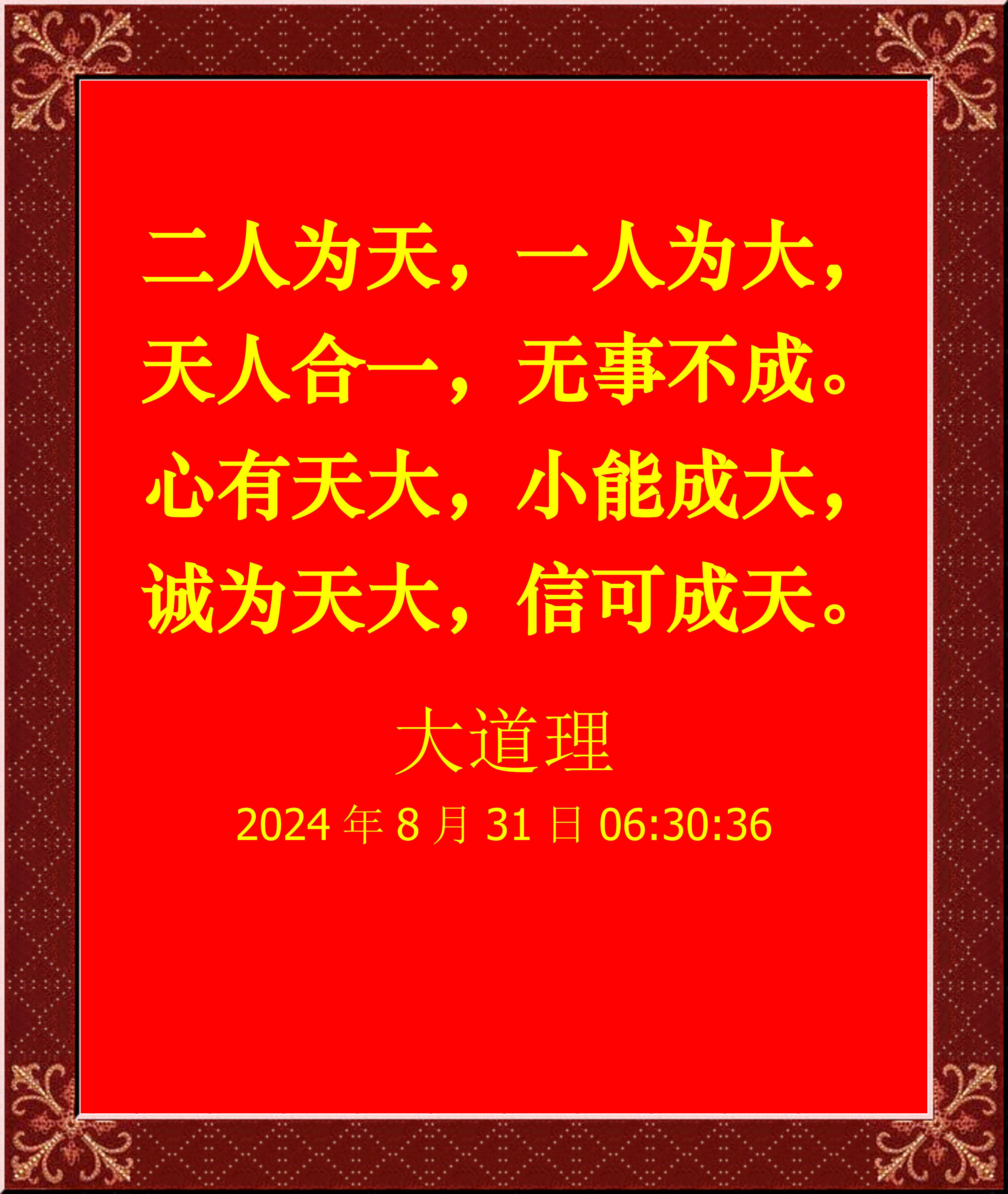 心有天大,小能成大,誠為天大,信可成天。