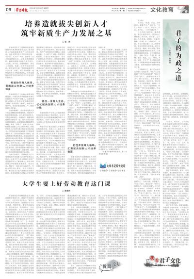 君子為政之道不是一蹴而就的,需自小刻苦學習,在行事上打磨修煉,茍日新,日日新,又日新,久久為功?!吨芤住ご笙髠鳌方馕觥缎⌒蟆坟裕骸帮L行天上,小畜,君子以懿文德?!碧焐瞎沃L,形容農(nóng)作物小有積蓄。君子應當效法這一精神,修身養(yǎng)性,提高自己的道德修養(yǎng)和各項才藝,以等待報效國家的時刻。古代考察為政賢才,依據(jù)《禮記·大學》篇“格物、致知、誠意、正心、修身、齊家、治國、平天下”的人格養(yǎng)成路徑,從個體修養(yǎng)和處理家庭事務能力著手,培養(yǎng)為政的君子德行和綜合才能。