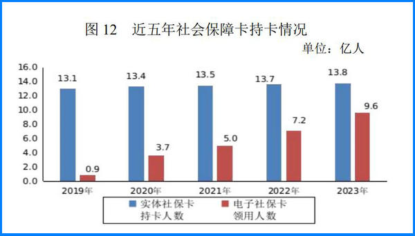 年末全國社會(huì)保障卡持卡人數(shù)達(dá)13.79億人,覆蓋97.7%人口;領(lǐng)用電子社會(huì)保障卡人數(shù)達(dá)9.62億人,全年提供線上服務(wù)151億人次。全國人社政務(wù)服務(wù)平臺(tái)全年訪問量11.18億人次。