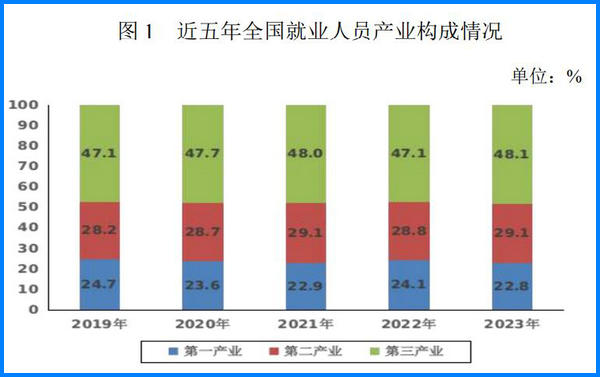 年末全國就業(yè)人員 74041 萬人,其中城鎮(zhèn)就業(yè)人員 47032萬人,占全國就業(yè)人員比重 63.5%。全國就業(yè)人員中,第一產(chǎn)業(yè)就業(yè)人員占 22.8%;第二產(chǎn)業(yè)就業(yè)人員占 29.1%;第三產(chǎn)業(yè)就業(yè)人員占 48.1%。