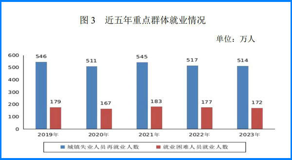 全年城鎮(zhèn)新增就業(yè) 1244 萬人,城鎮(zhèn)失業(yè)人員再就業(yè) 514萬人,就業(yè)困難人員就業(yè) 172 萬人。全年全國城鎮(zhèn)調(diào)查失業(yè)率平均值 5.2%,年末全國城鎮(zhèn)調(diào)查失業(yè)率 5.1%。全年選派 4.2萬名高校畢業(yè)生到基層從事“三支一扶”服務(wù)。