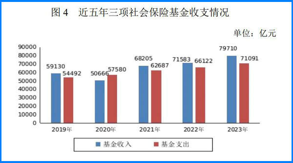 全年基本養(yǎng)老保險(xiǎn)、失業(yè)保險(xiǎn)、工傷保險(xiǎn)三項(xiàng)社會(huì)保險(xiǎn)基金收入合計(jì)79710億元,比上年增加8128億元,增長11.4%;基金支出合計(jì)71091億元,比上年增加4969億元,增長7.5%。