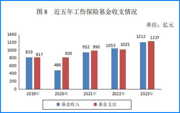 全年工傷保險(xiǎn)基金收入 1212 億元,基金支出 1237 億元,年末工傷保險(xiǎn)基金累計(jì)結(jié)余 1415 億元(含儲(chǔ)備金 119 億元)。